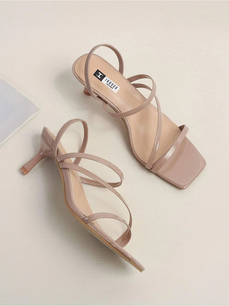 Add a touch of elegance with these glossy nude brown strappy heels. Featuring a comfortable mid-heel and a modern square toe, these sandals are perfect for any occasion. The standout detail is the elasticized heel counter, ensuring a snug fit and effortless wear. Whether you're at a party or a formal gathering, these versatile heels will keep you stylish and secure all day.