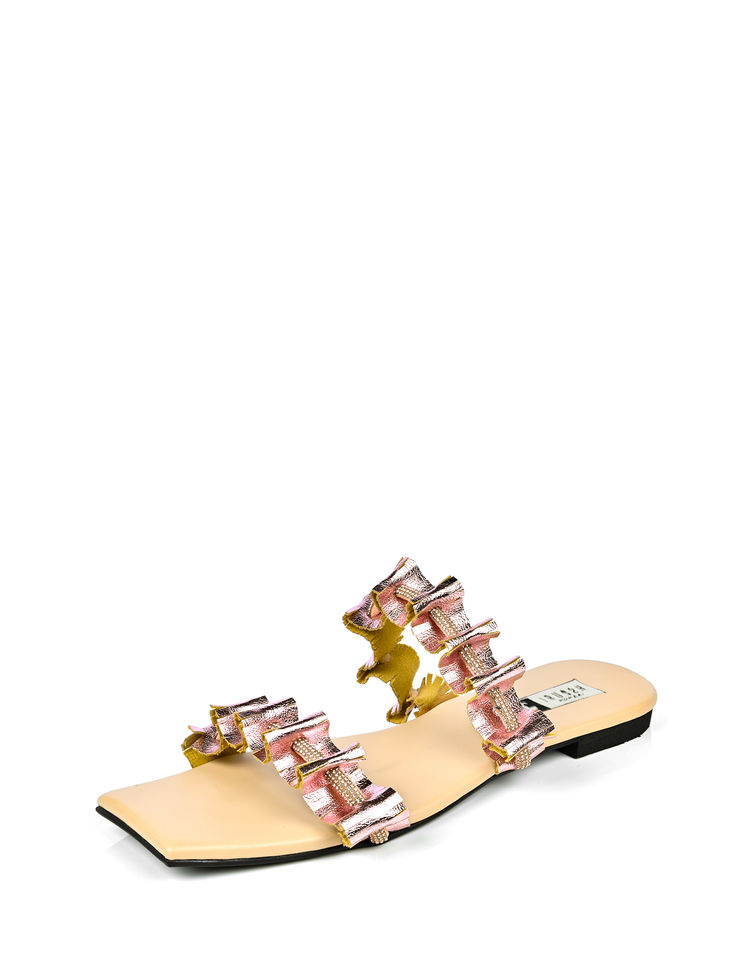 Memory Foam Metallic Pink Fringe Tunnel Flats