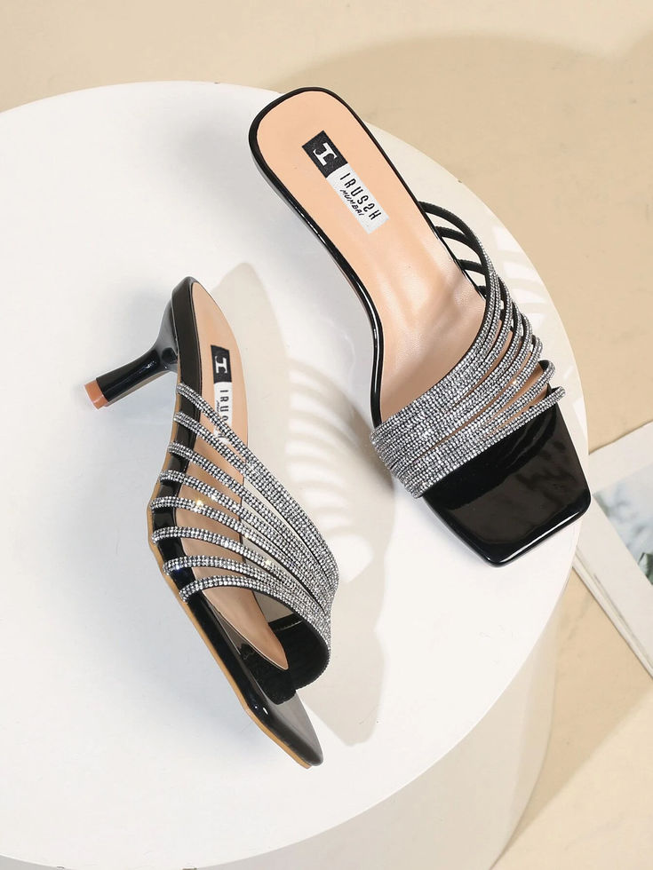 Introducing our stunning Black Diamond studded slant strips heels, the perfect addition to any woman's footwear collection. These stylish heels are not only vegan but also handcrafted to ensure the highest quality. With a sustainable design, these heels are as good for the environment as they are for your look.Enjoy unparalleled comfort in these fashionable heels, which feature a slanted strip design and eye-catching black diamond studs. Whether you're dressing up for a night out or need a sleek yet comfortable option for the office, these versatile heels are suitable for every occasion. With their combination of style and eco-conscious craftsmanship, these Black Diamond studded slant strips heels are a must-have for any fashion-forward woman.